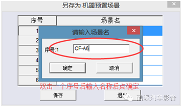 此功能是将调试好的数据保存到机器中以方便听不同风格的歌曲时快速的切换模式,步骤如下:场景》另存为机器预置场景》选择序号双击》输入名称(只能是数字或英文)》点击确定》进度条完成后数据就保存完成了。