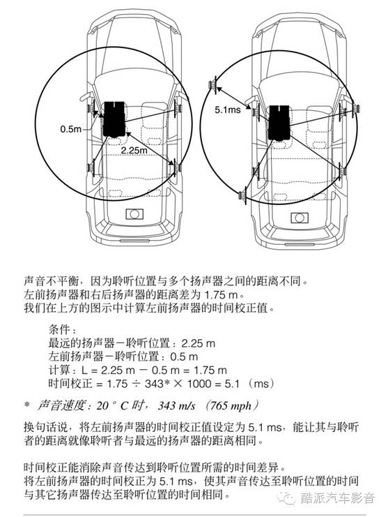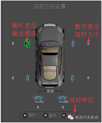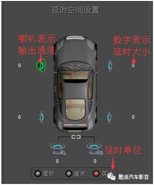 毫秒、厘米、英寸三者之间其实是由一个计算公式算来的,厘米和英寸是距离单位、毫秒是时间单位,1英寸=2.54厘米,距离=速度X时间,声音的速度340米/秒,下图为在车上做过延时的原理图。
