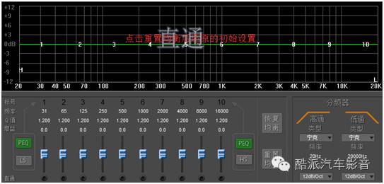 5、重置均衡:此功能是将调试过的数据还原到初始状态,即EQ的一键还原键,此功能修改后数据无法还原,必须重新调试。