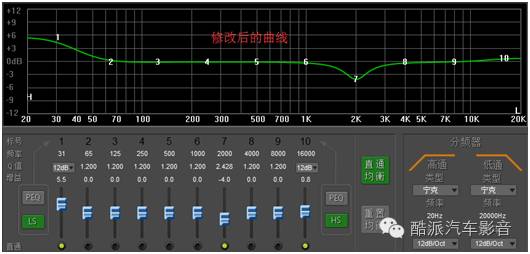 调整斜率是为了让每个声场之间更好的衔接,以达到声音的完整性,一般在调整声场时声场的斜率多用12dB,调整超低音时候上限多用12dB、下限多用24dB。