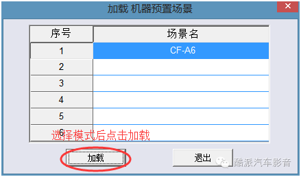 此功能是将保存在机器中的不同模式调取出来,听不同风格的歌时使用,步骤如下:场景》加载机器预置场景》选择预存过的场景》确定》读取进度条》加载完成,机器中能存储6个模式,方便听不同风格的歌曲时切换,没有电脑时可用外界控制面板切换。