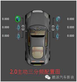 上图为延时调节与显示区域,图中喇叭代表每个输出的通道,数字代表每个通道调节的延时的数值,毫秒、厘米、英寸代表所用延时的计量单位。图示中喇叭亮起时,对应的输出通道也会同样亮起,如图中前左通道亮起时,输出通道所对应的位置“”也会亮起。延时的原理:DSP调节喇叭发出声音的时间已达到由于车内环境限制所带来的空间问题,传统的音响改装方式改过音响之后驾驶员只能听到左边喇叭的声音,右边的几乎没有,而副驾只能听到右边的声音,左边几乎没有,DSP能让驾驶员听到的声音是从正前方发出,这就是延时效果。