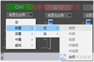单独通道中的音量在线控面板中是不可以调节的,这样可以有效的减少车主的误操作,如有车主上车则将主机音量钮至最大,这样主机输出的信号会出现失真,反应到喇叭上时失真的会更明显。