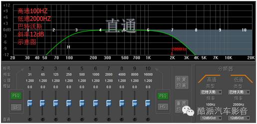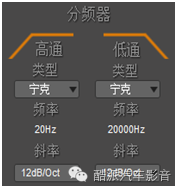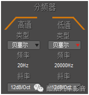 频率的切频根据所做系统的不同所用的斜率类型、切频点与斜率会有所不同,一般“发声”的套装部分用贝塞尔、12dB、切80以下的频率部分,“发出震感”的部分用巴特沃斯、12dB/24dB。后面将做详解。