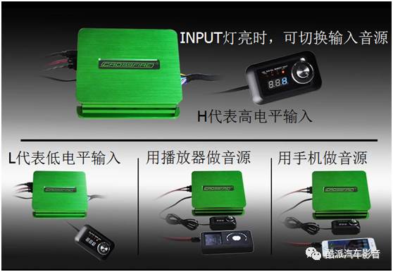 低电平输入一般有主机(CD、DVD等)、手机、播放器等,这个部分的输入是为了车主更好的扩展其他的音乐播放设备外接使用,另外机器配置有一个外接的控制面板可以做音源的切换,详见控制面板详解。