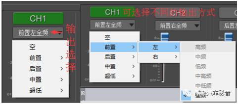 1、目前最常做2.0、2.1、4.0、4.1、5.1的系统,做系统时可根据目前所做的系统在DSP软件上选择出所对应的通道的输出配置,为下一步的调试做好基本功。