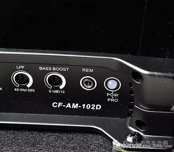 有源提供的动力是有源超薄炮的重要部分,两个十寸低音炮中间放置一台实际总功率为250W的功放,在2Ω载荷下分别以两路各100W的大功率推动一个超低音单元,力量绝对称职。控制面板上加入50-250Hz的低通可调频率,以及0-12dB的低音增强能力。整体呼应的黑色设计简洁美观,重点是黑色的设计匹配绝大部分车型的深色调内饰设计,与原车空间显得分外和谐。