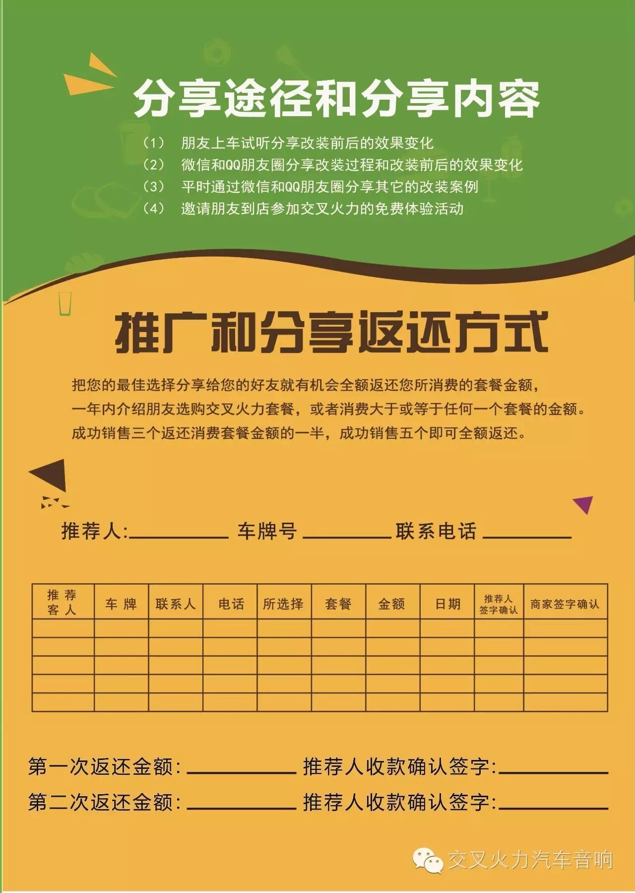 不只送喇叭,安装套餐后推荐三个车主来装返还该套餐价的一半,推荐五个车主来装该套餐全全额返还。