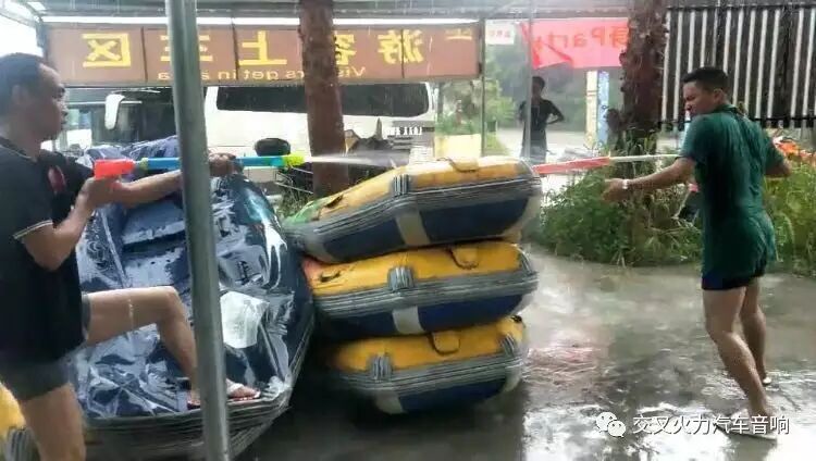在这快与慢、急与缓的节奏中一路漂了下来。时而缓,时而惊心动魄的,在一段平缓的地带,大伙儿进入了互相泼水战中,“战况激烈”。