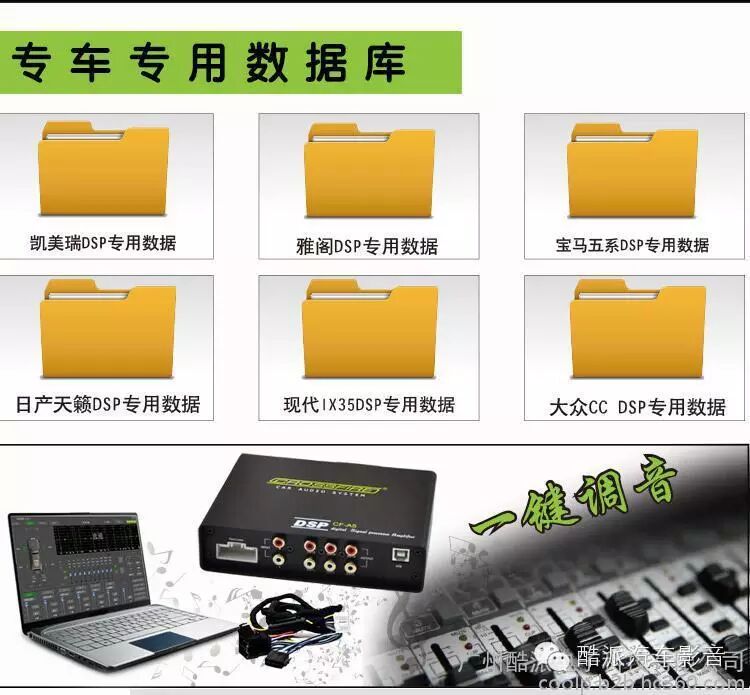 在快速、安全、标准、好声的原则指导下,交叉火力为市场准备了多种车型的专车专用的DSP功放的辅助配件,让店家的施工确保可以在30分钟内完成——这对那些美容店、4S店等费专业音改店的音响项目是个很好的选择!广州酷派联合北京千度,共同开发北京的汽车音响升级市场,欢迎广大店家加入这个团队——市场推广的辅导、音响改装技术的辅导、活动策划实施的辅导等等切合本地店家需求的活动不断推出——有意者请关注酷派及千度的官方微信